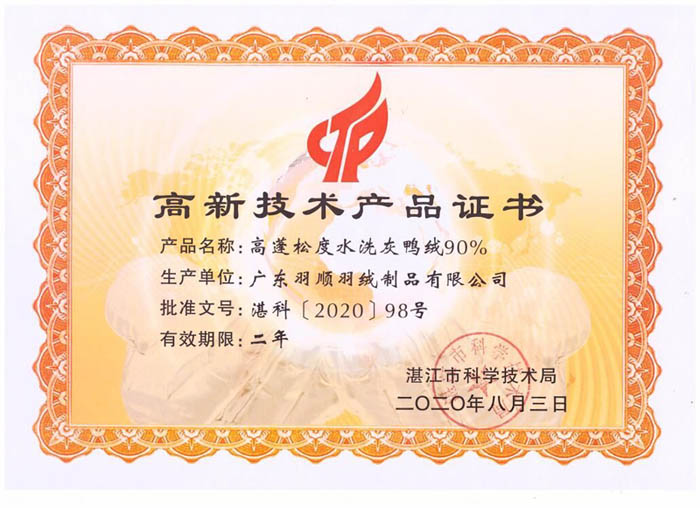 羽顺公司高新技术产品证书