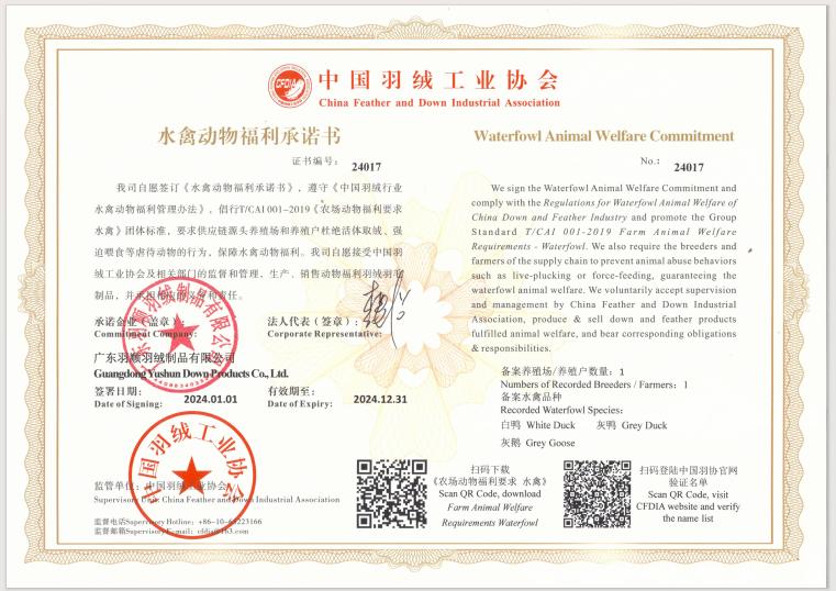 2024年水禽动物福利承诺书